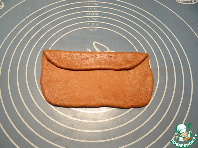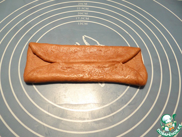 По длинной стороне загибаем тесто до середины,