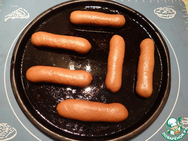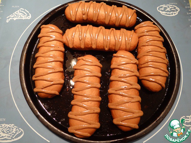 Тестом №2 рисуем узор - зигзаг. Выпекаем булочки в духовке при температуре 200 градусов примерно 15-18 минут.