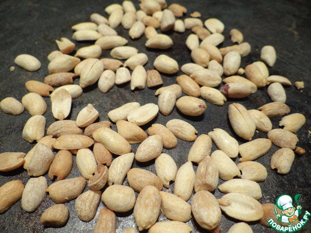 Арахис немного обжариваем в духовке (я это делаю заранее, до того, как выпекаю булочки).