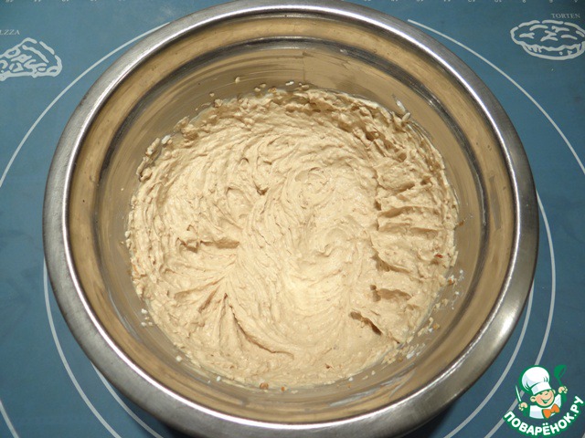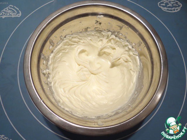 Все ингредиенты взбиваем миксером примерно в течение 2-3-х минут. Масса должна получиться пышной.