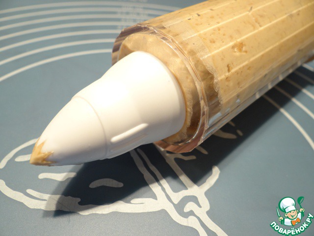 Тесто №2 перекладываем у кондитерский шприц или мешок с насадкой с круглым отверствием.