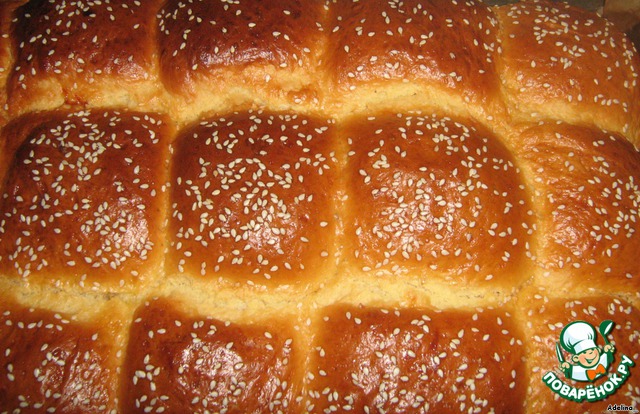 Яйцо хорошо взбить с сахарной пудрой и смазать булочки дважды.Посыпать кунжутом(если есть)и выпекать при 200гр минут 45 и затем убавив жар до 175-180гр печь до появления красивой темной корочки.Она обязательно будет темной из-за сахарной пудры.