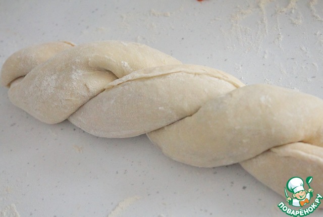 Два рулета с повидлом переплетаем между собой. Два рулета с корицей переплетаем между собой. Получается два рулета, один с повидлом и другой с корицей. Начинку можете брать любую.