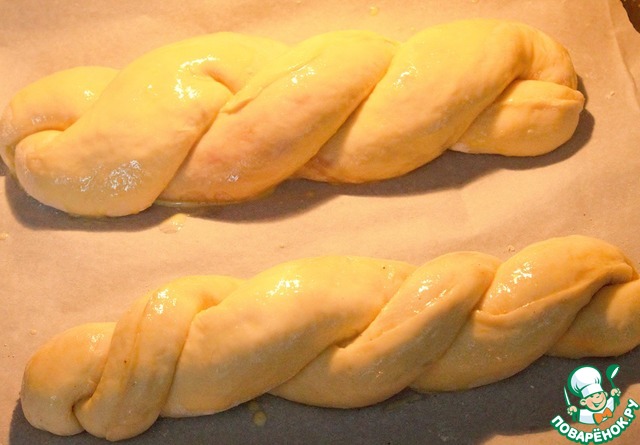 Рулеты выкладываем на противень. Осавляем на растойку на 30 мин. Смазываем желтком взбитым с 1 ст. л. холодной воды и отправляем в духовку на 180 гр. на 30 минут.