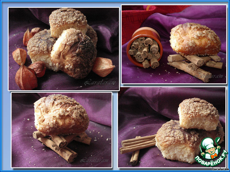 | Рецепт найден на сайте (на немецком языке) о хлебе и булочках Здравствуйте - и снова я! И снова с выпечкой, на сей раз вкуснющие булочки с карамельной корочкой! Готовить несложно, но зато ка-а-ак вкусно! Прощай, талия! Но немножко всегда можно! Старалась всe по рецепту делать, одно изменила: заменила дрожжи сухие на свежие (ну не моe это, сухие дрожжи!) и исключила изюм, что, собственно, допускалось и в рецепте. Также не использовала формочки "маффиновские" для выпечки булочек, а формовала кругленькие булочки... как-то на вкусе вовсе и не отражается! Готовить очень просто - так что закатывайте все рукава и дружно на кухню! |
