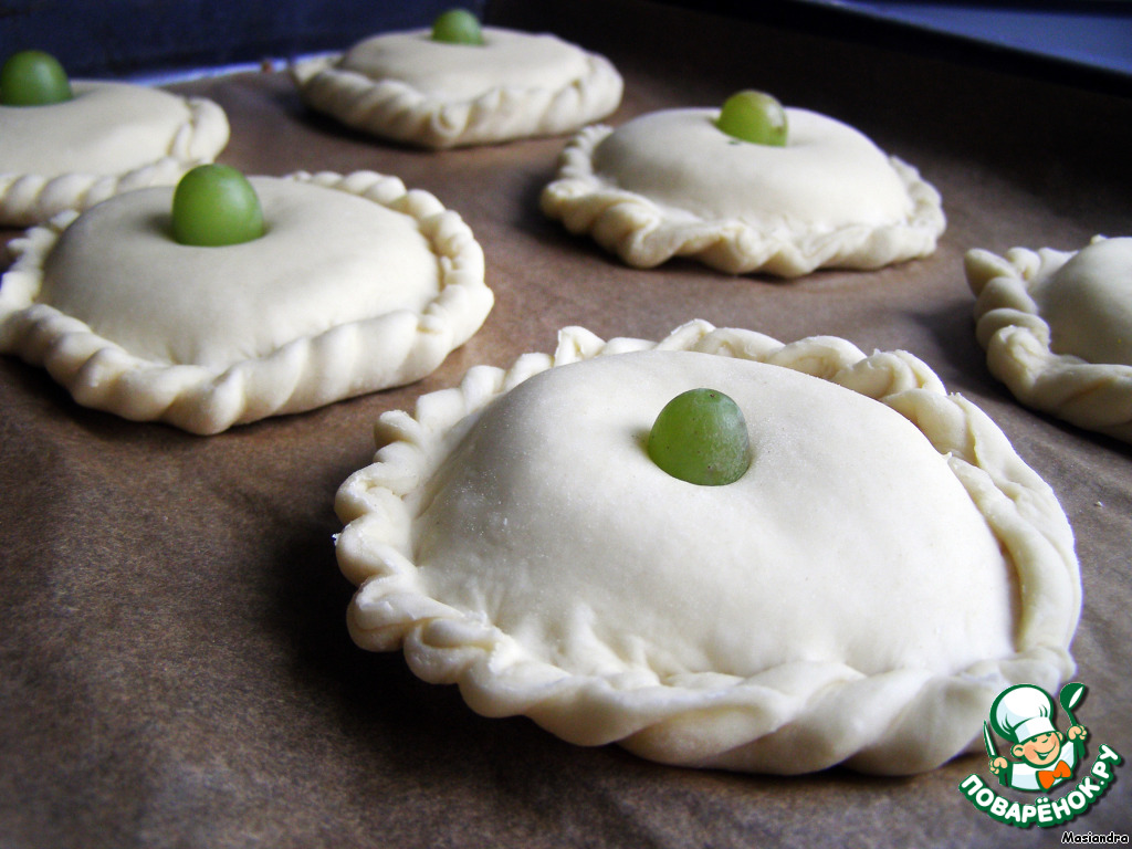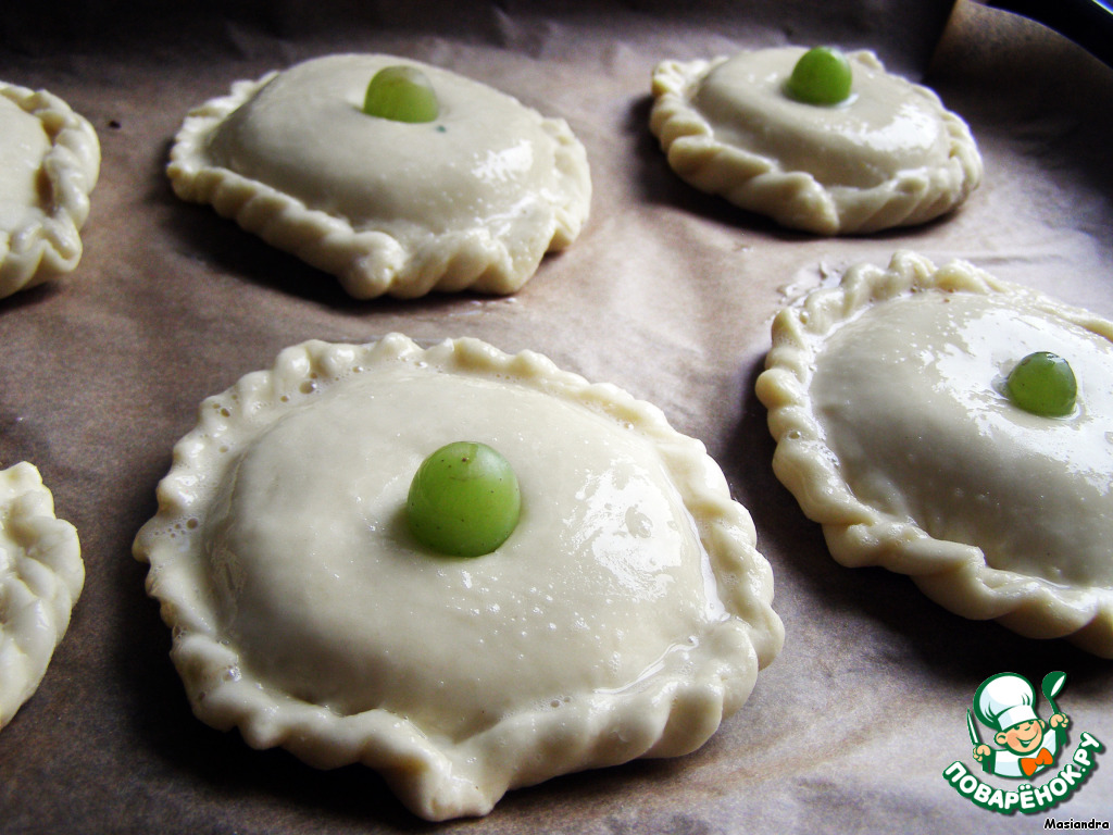 В серединке сделать углубление и положить густое варенье, либо любую ягоду. Я положила виноград.