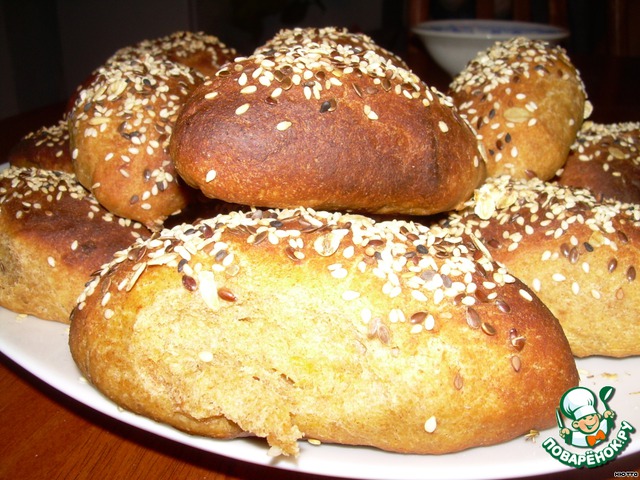 | С появлением в доме хлебопечки всe экспериментирую с выпечкой из ржаной муки. Рецепт этих булочек нашла в Интернете (куда же без него????), и они стали любимыми в нашей семье! С хрустящей корочкой, очень-очень вкусные!!! Попробуйте!!! |