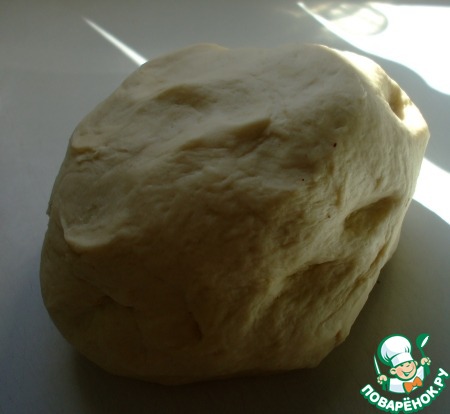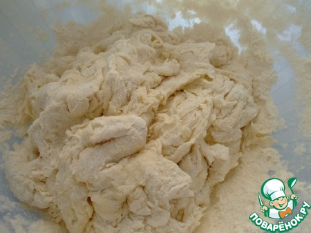 Замесить гладкое, не липкое тесто. Я замешивала в хлебопечке. В книге предлагают вывалить тесто на посыпанную мукой поверхность, и месить минут 5 до гладкого, эластичного теста.