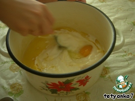 Когда все компоненты готовы, осталось добавить только муку. Добавляем муку и снова все хорошо перемешиваем. Готовое тесто ставим в теплое место. Тесто должно подойти 2 раза...