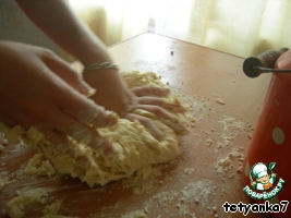 Вот наше тесто и готово, можно его вымешивать (муки брать столько, сколько теребут тесто)