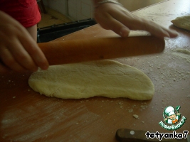 Из готового вымешанного теста раскатываем лепешки приблизительно длиной и шириной 20 и 10 см
