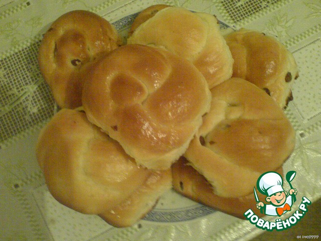 Вымесить 8-10 мин. Муки не надо много вбивать, поэтому вымешиваю в миске. По желанию добавить изюм.