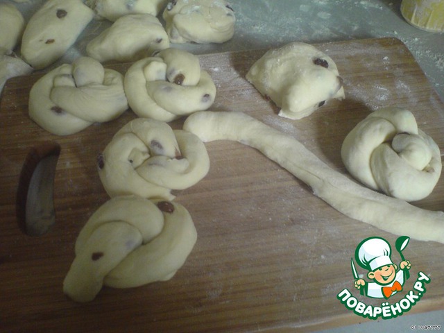 Разделить тесто на 18 одинаковых частей и сформировать булочки.