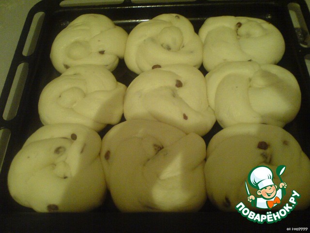 Уложить их на смазанный маслом противень на расстоянии 5-7 см. и дать настояться 1 час под пищевой плёнкой.