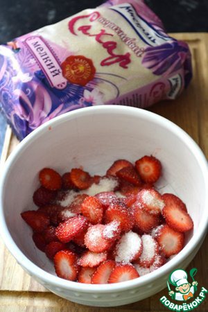 Клубнику очистить от плодоножек, нарезать пластинками, уложить в кастрюлю. Добавить сахар. Оставить минут на 20, чтобы клубника дала сок.