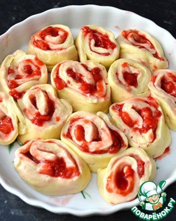 Выкладывать не очень плотно, так как булочки еще поднимутся и увеличатся в размере.