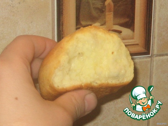 Готовые булочки я разрезаю пополам, намазываю сливочным маслом, кладу кусочек сыра или ветчину, как подскажет фантазия.