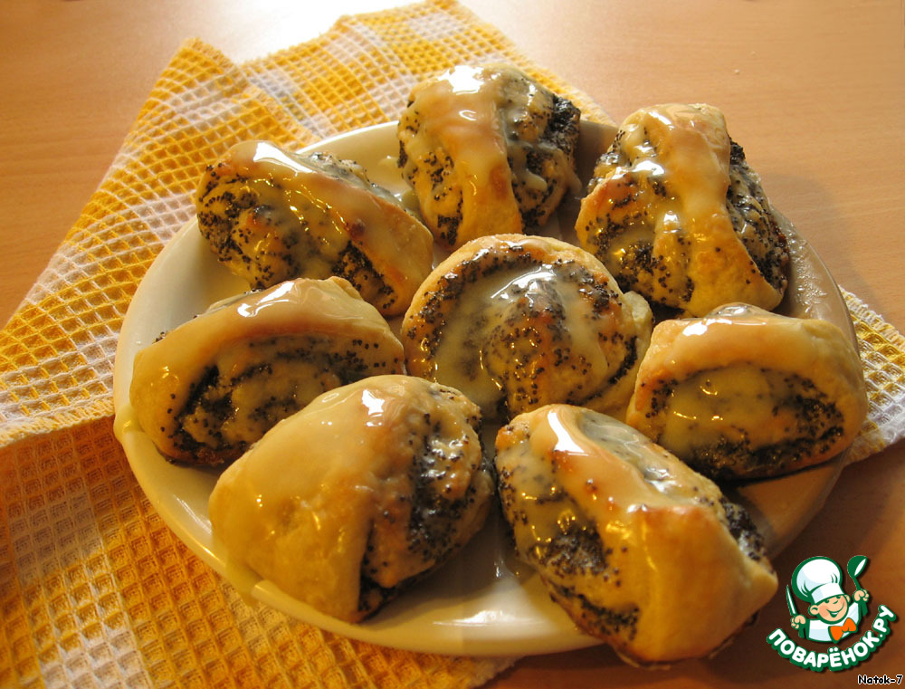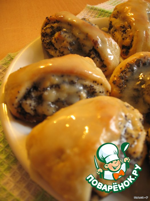 | Эти булочки, прослоенные сладкой маковой начинкой и политые ванильной помадкой, будут хорошим угощением к чаю. |