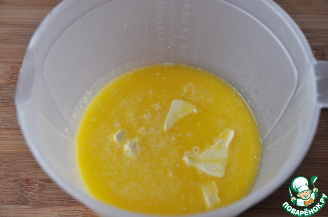 Нагреваем молоко, воду и сливочное масло в микроволновке приблизительно до 40 градусов.