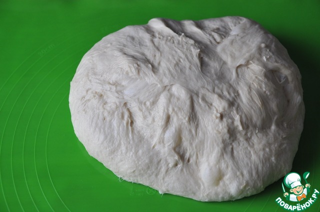Кладём на противень, застеленный пергаментом, накрываем плёнкой и оставляем в тёплом месте для подъёма на 1 час.