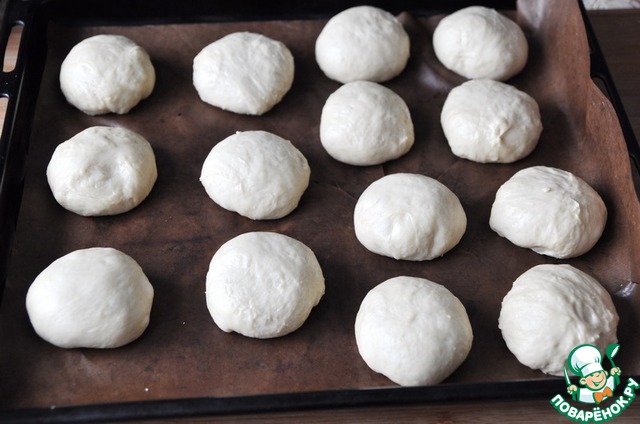 Разделываем тесто на "колобки" весом около 60 г. У меня получилось 14 штук.