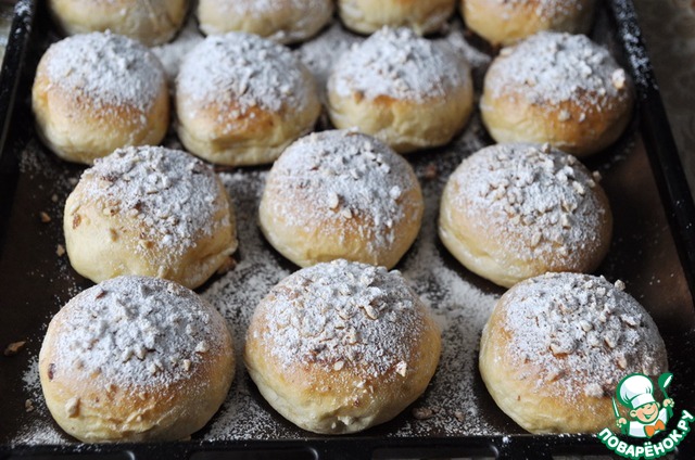 Даём им слегка остыть, посыпаем сахарной пудрой.