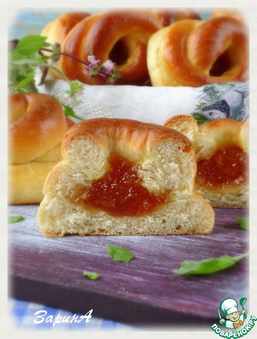 Жгут сложенный вдвое положить поверх джема. Таким образом сделать все булочки.