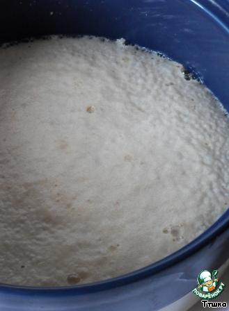 В емкость влить 1 стакан теплой воды, добавить 1 ч.л. соли, 1 ст.л. сахара и 1 пакетик дрожжей (11 г.), перемешать и дать постоять около 5 минут, чтобы дрожжи немного подошли.