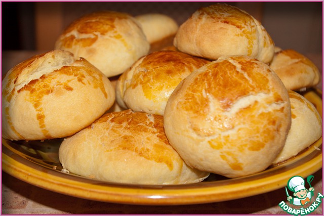 Из теста скатать небольшие булочки, смазать верх яичным желтком, дать немного расстояться и выпекать при температуре 180 градусов до тех пор, пока корочка не позолотится и не потрескается (минут 20-30)