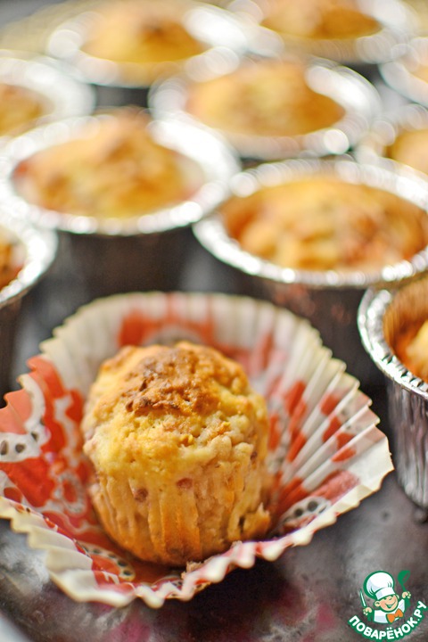 Я выпекала булочки в формочках для маффинов, для удобства застелив их бумажными манжетками. Заполняйте формы на 2/3.