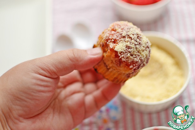 Верхушку каждой булочки окунуть сначала в малиновый сироп.