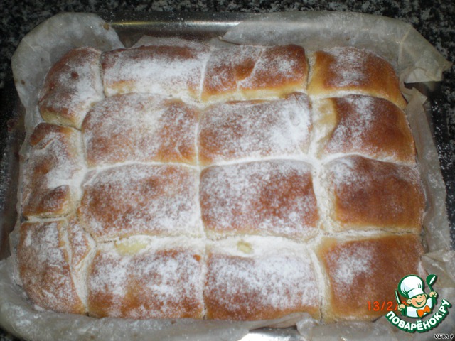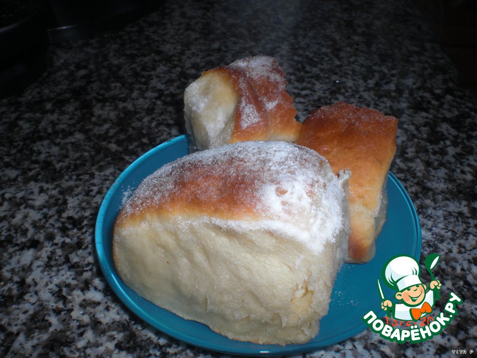 Готовые пирожки-булочки присыпать сахарной пудрой.