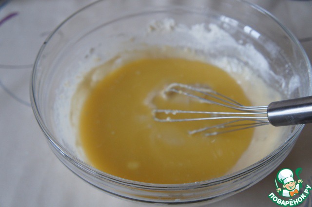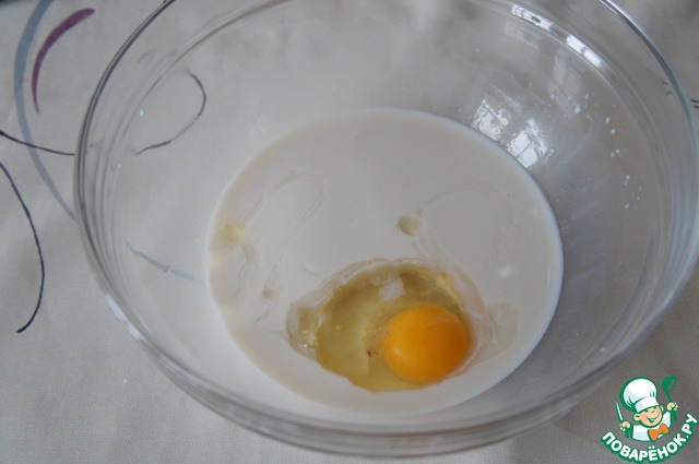 Добавить яйцо, соль, сахар и все взбить венчиком.