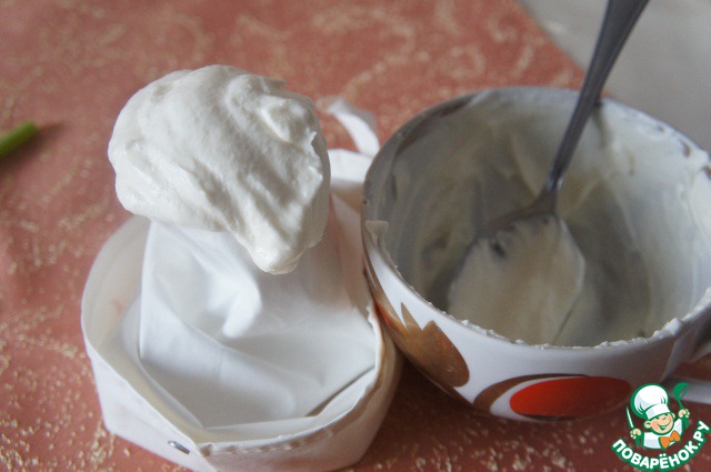 Для начинки взбить сливки с сахаром. Я еще добавила закрепителя сливок от фирмы "Д-р Откер".