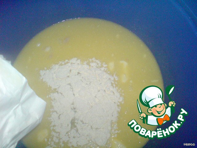выливаем маргарин и начинаем замешивать тесто