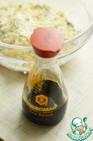 2. Сыр натереть на терке, лук мелко нарезать. Добавить к мучной смеси. Затем влить йогурт и соевый соус, быстро перемешать. Тесто должно быть довольно густым.