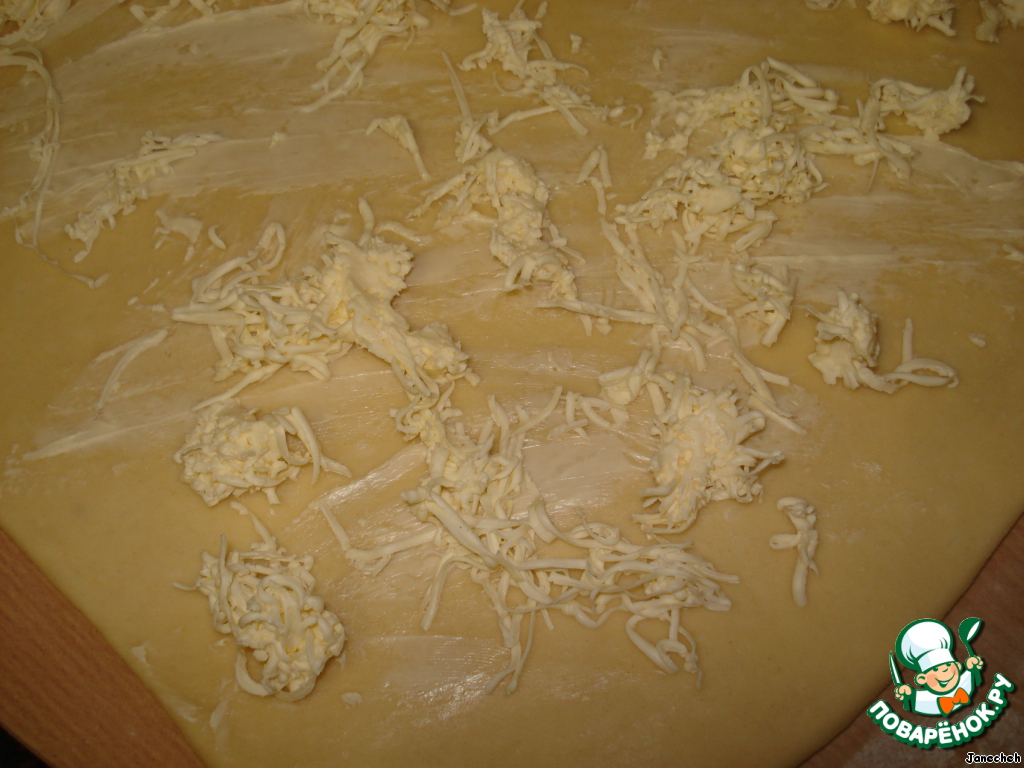 Сложить тесто конвертом, раскатать толщиной 1,5–2 см.