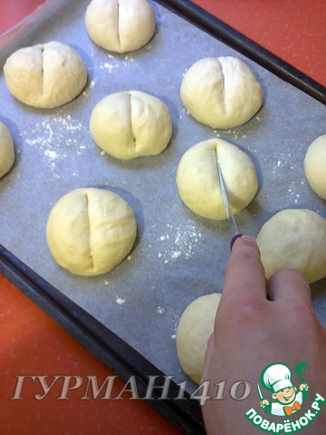Я сделала, как Юлия Высоцкая – провела ножом посередине каждой булочки.