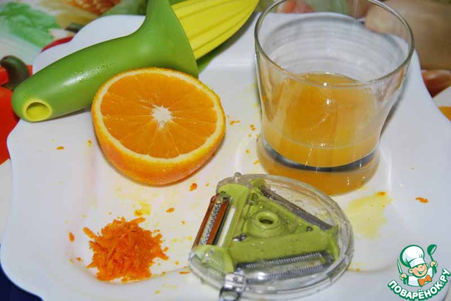 Апельсин моем, натираем цедру и выдавливаем сок. Нам понадобится 50 мл сока.