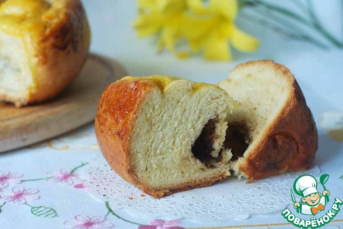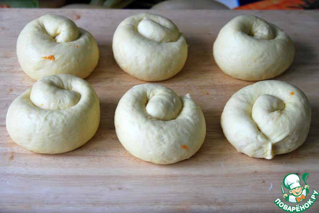Булочки кисточкой смазываем яичным желтком и посыпаем сахаром демерара от "Мистраль".
