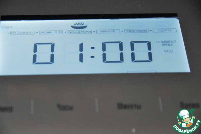 Закрываем крышку и включаем мультиварку на режим "выпечка" на 1 час.