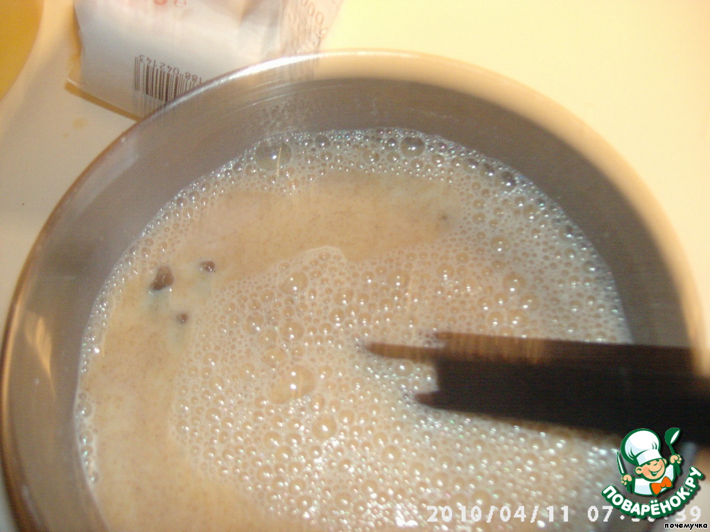 С теплым молоком смешать яйцо, сахар, кардамон и соль.