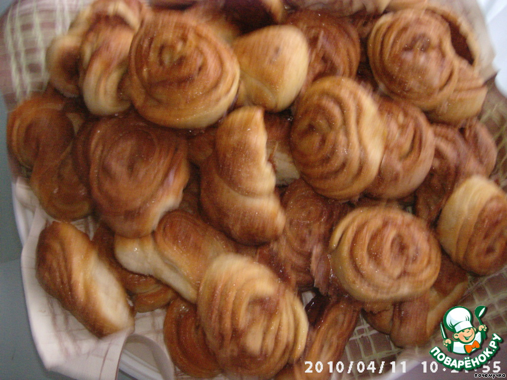 Посыпать сахаром и выпекать при 225°С на среднем уровне духовки, 10-15 минут.