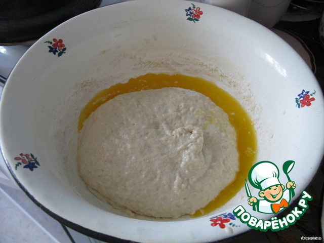 В конце вымешивания добавить растопленное масло (можно теплое, но не горячее).