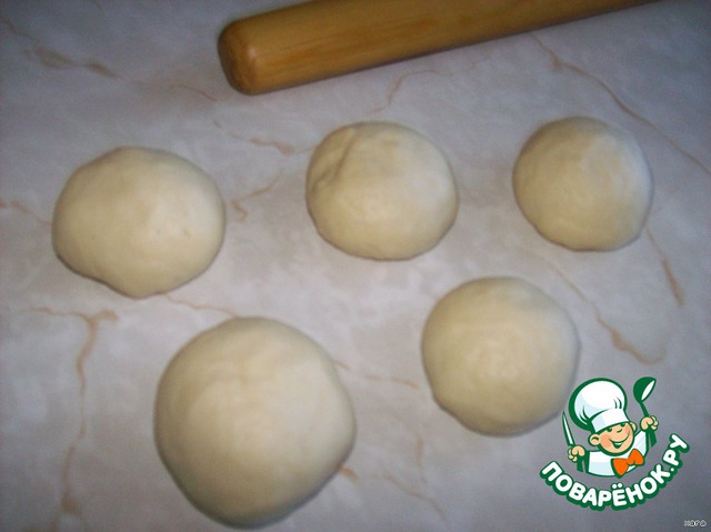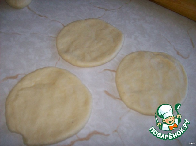 Шарики раскатываем в круглые лепешечки толщиной около 1 см.