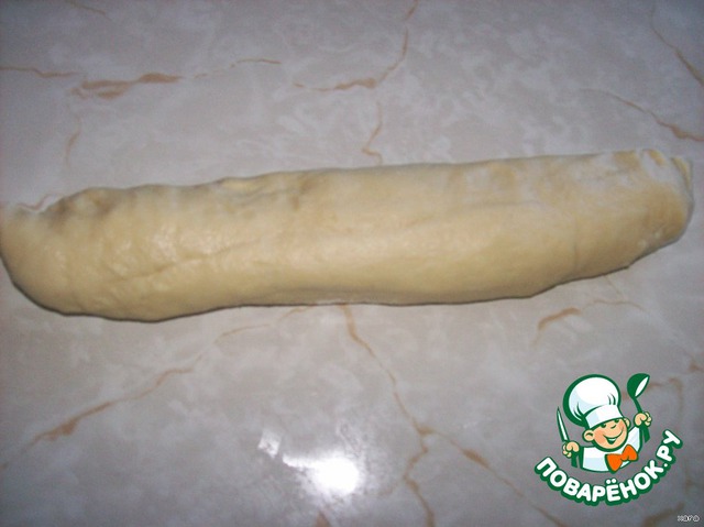 Из подошедшего теста формуем булочки: сначала делаем жгут, который режем на кусочки.