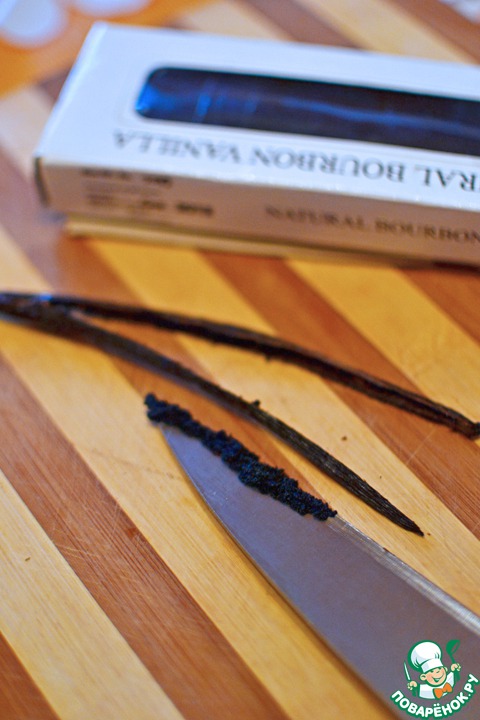 Стручок ванили разрезать вдоль пополам и выскоблить ножом семена. Не стоит заменять его ванилином в пакетиках или использовать готовый ванильный сахар. Иначе соус сильно потеряет во вкусе.