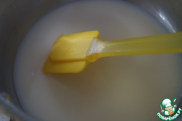 Пока тесто подходит приготовим крем. Для этого молоко помешивая нужно вскипятить с сахаром и снять с огня.