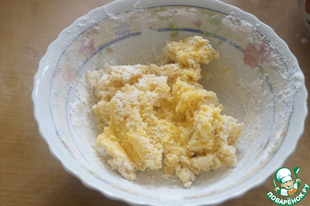 Желтки растереть с мукой и крахмалом.