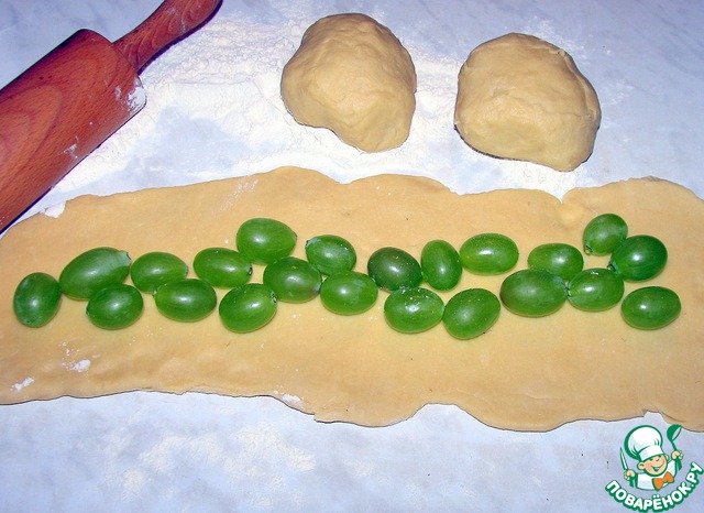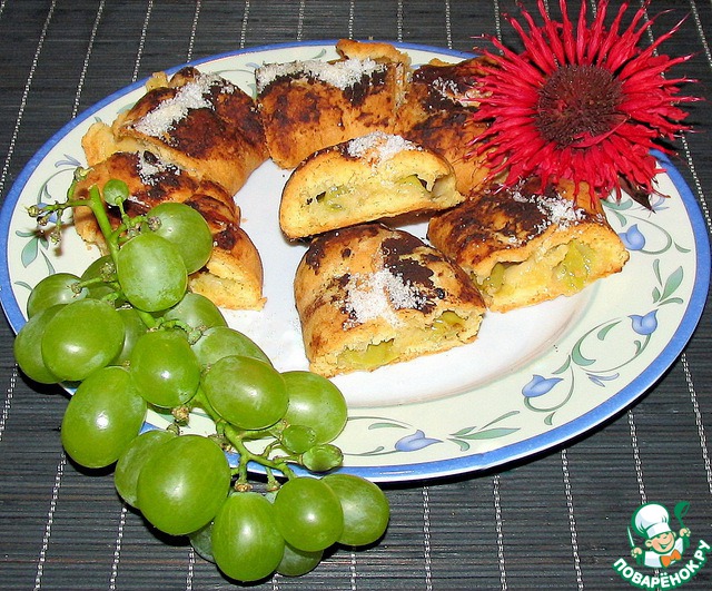 Начинка - кислый виноград. Хорошее сочетание - тесто сладкое и кислая начинка. Можно подсыпать к винограду сахар, но без него мне больше нравится.